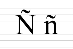 Ñ, ñ (N с тильдой) — буква расширенной латиницы. В испанском алфавите является 15 буквой, обозначает звук [ɲ] и называется исп. eñe. Кроме испанского, буква используется в казахском, татарском, крымскотатарском и бретонском алфавитах, а также в алфавитах, созданных на основе и под влиянием испанского: галисийском, астурийском, арагонском, баскском, кечуа, аймара, филиппинском и др.