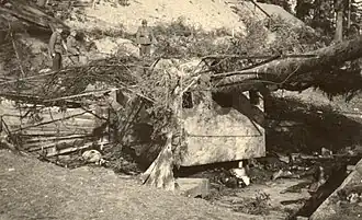 Предположительно, 1-е и 2-е орудия конкретно были атакованы танковым полувзводом лейтенанта Коха из состава 8-й роты 1-го танкового полка, которые, как утверждается, атаковали орудия «слева и справа от дороги», используя ручные гранаты и огнемёты, вступив в рукопашный бой с расчётами орудий[79].