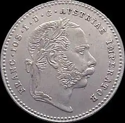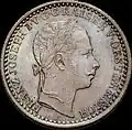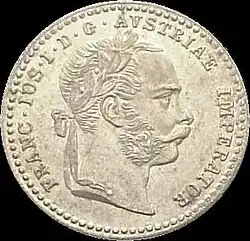 20 крейцеров | 21 | 2,7 | 1 | гладкий | серебро 500-й пробы | 1868—1870, 1872 | Суммарно[Тиражи 7] — 91 060 620[8] | |