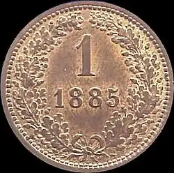 - ↑ от предыдущего типа монету отличает портрет императора Франца-Иосифа (с бакенбардами)