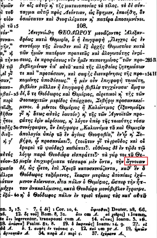 - ↑ Патриарх Фотий Константинопольский Мириобиблион 108 «Феодор Александрийский против Фемистия». Дата обращения: 9 июля 2013. Архивировано 26 марта 2013 года.