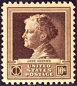 Джейн Аддамс (англ. Jane Addams; 6 сентября 1860, Сидарвилл, Иллинойс — 21 мая 1935, Чикаго, Иллинойс) — американский социолог и философ, лауреат Нобелевской премии мира 1931 года. Президент Международной женской лиги за мир и свободу (1919—1929). Соучредительница Американского союза защиты гражданских свобод (ACLU)[6].