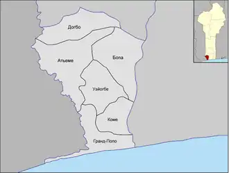 Граничит с Того на западе, с департаментом Зу на востоке, на юго-востоке — с департаментом Атлантический, на юге — с департаментом Моно. Административный центр — город Догбо-Тота. Включает 5 коммун: