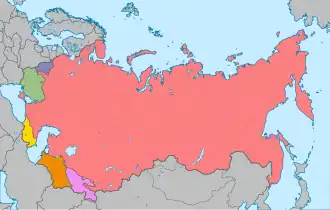 2 Закавказская СФСР (ЗСФСР)186 1005 861 600Тбилиси3 союзных республики, 1 договорная республика, 2 автономные республики, 2 автономные области