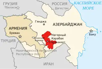 Эксклав граничит с Турцией, Ираном и Арменией. С начала Карабахского конфликта граница с Арменией закрыта. Связь с остальной территорией Азербайджана в основном происходит через Нахичеванский аэропорт, также используется автомобильное сообщение через Иран[60]. По заявлению о прекращении огня, подписанному Азербайджаном и Арменией при посредничестве России 9 ноября 2020 года, Армения гарантирует безопасность транспортного сообщения между западными районами Азербайджана и Нахичеванской Автономной Республикой. Контроль за транспортным сообщением будут осуществлять органы Пограничной службы ФСБ России. По согласованию Сторон будет обеспечено строительство новых транспортных коммуникаций, связывающих Нахичеванскую Автономную Республику с западными районами Азербайджана[61].