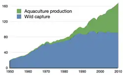Мировая аквакультура развивается, давая сегодня около половины всей рыбы, предназначенной в пищу[9].