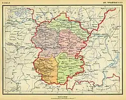 В 1913 году в уезде было 16 волостей[10], упразднены Сарская и Сутяжинская волости, Турдаковская волость переименована в Семеновскую.
