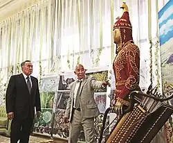 - Казахстан, Алматы, Дом дружбы (2011.03.22) Презентация реконструкции собирательного образа сакского воина-вождя президенту Казахстана Назарбаеву Н. А.[22]