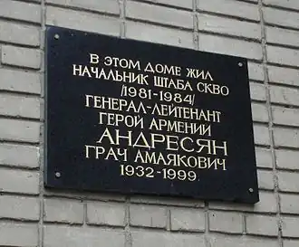 - На доме в Ростове-на-Дону, где жил Андресян, установлена памятная доска.