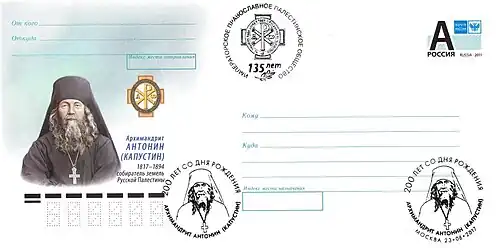 - ↑ Полина Михайлова 22.08.2017 Завтра выйдет марка, посвящённая 200-летию со дня рождения архимандрита Антонина (Капустина). Дата обращения: 10 октября 2017. Архивировано 10 октября 2017 года.
