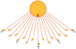 Солнечный диск Атона, главное божество в правление фараона Эхнатона (XVIII династия), изображали в виде солнечного диска с простирающимися от него лучами, которые заканчивались кистями рук[11], иногда протягивающими символ жизни анх[12].