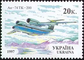 Модификация Ан-74ТК-200 на почтовой марке Украины, 1997 г.