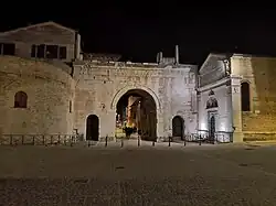 Памятник состоит из двух небольших боковых арок и значительно более крупной центральной арки; замковый камень последней украшен изображением животного, уже неузнаваемого, но, скорее всего, изображавшего слона. Поверх основных ворот располагался большой, ныне утерянный, аттик с коринфским псевдопортиком, в котором было семь арочных окон, разделенных восемью псевдоколоннами. Весь памятник имеет много стилистического сходства с воротами Августа в Спелло, Аосте и особенно с воротами Аутона в Провансе.