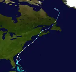 В 21:00 UTC 2 июля, предупреждение об урагане было объявлено в Северной Каролине от Сёрф-Сити до Дака, включая Албемарл-Саунд и Памлико-Саунд. Кроме того, тропическое штормовое предупреждение было выпущено от реки Санти в Сёрф-Сити, а ещё одно от Дака до маяка Кейп-Чарльз, в том числе в устье Чесапикского залива[37]. Предупреждение о тропическом шторме было отправлено в Массачусетс в 21:00 UTC 3 июля, простираясь от Провинстауна до Чатема на Кейп-Коде, затрагивая Нантакет, в дополнение к наблюдению за тропическим штормом между Порт-Мейтлендом и Пойнт-Акони, выданным Министерством окружающей среды Канады[38]. Около 01:00 UTC 4 июля наблюдение за ураганом было прекращено к югу от Сёрф-Сити, в то же время было прекращено предупреждение о тропическом шторме к югу от залива Литтл-ривер[19]. Два часа спустя, предупреждение о тропическом шторме было отменено к югу от Кейп-Фира в Северной Каролине, но наблюдение за тропическим штормом в Канаде было расширено и включило Нью-Брансуик на границе с США, Гранд-Энс в Новой Шотландии, Кейп-Бретон и остров Принца Эдуарда[39].
