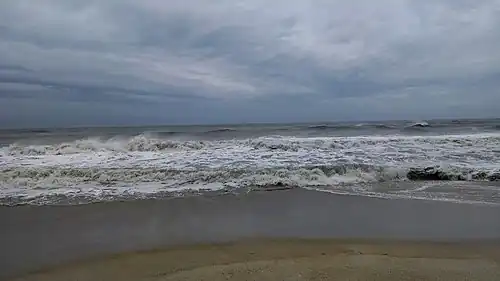 Высокие волны на острове Ассатик, вызванные ураганом «Артур»