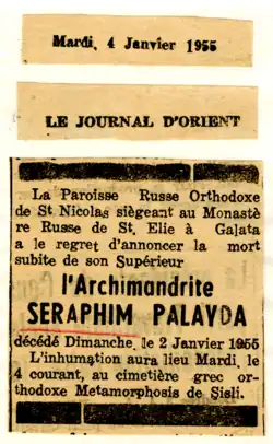 - ↑ Архиепископ Серафим (Иванов). Паломничество из Нью-Йорка в Святую землю Архивная копия от 12 октября 2007 на Wayback Machine // Русский инок : журнал.