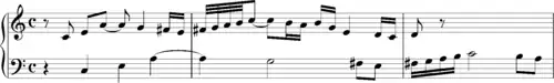 Аугментация изредка встречается и в неполифонической музыке, например, в первой части Четвёртой симфонии Брамса, в тт. 246—258 у духовых (ср. тт. 1-4 той же части, у струнных).