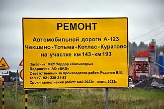 - ↑ Тендер на выполнение работ по объекту: Ремонт автомобильной дороги А-123 Чекшино – Тотьма – Котлас-Куратово в Республике Коми | Коми республика | Закупка: 0315100000324000020 | РосТендер. rostender.info. Дата обращения: 7 декабря 2024. Архивировано 8 декабря 2024 года.