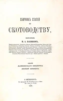 - 7) «Сборник статей по скотоводству И. А. Бабина». СПб. 1869.