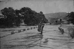 …полотно Севастопольского шоссе… оказалось также затопленным водой выше боковых шоссейных столбиков. Здесь на открытом пространстве стало заметным, как масса воды движется в сторону долины Чёрной речки, заполняя русло её притока Байдарки. Вода хлынула через мост и шоссе на протяжении по крайней мере 200 метров… Сопротивляясь сильному течению воды, с риском быть снесенными в Байдарку, мы перешли через мост и вскоре вышли на незатопленный участок шоссе[17]
