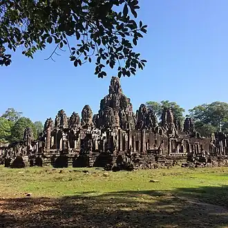 Байон (кхмер. ប្រាសាទបាយ័ន, Prasat Bayon) — храмовый комплекс в центре Ангкор-Тхома, построен в XII веке в честь Джаявармана VII. Храм имеет три уровня и его окружают три стены. Основная часть декора храма — изображение бытовой и повседневной жизни кхмеров. Есть также глухая стена высотой в 4,5 метра на которой изображены сцены победы Джаявармана VII над чамами в битве на озере Тонлесап.