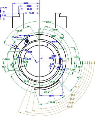 | Байонет Contax-Киев RF | 34,85 наружный[23]; 31,85 внутренний | 49 наружный; 36 внутренний | 24×36 мм | наружный и внутренний байонет | 1932—1985 |
