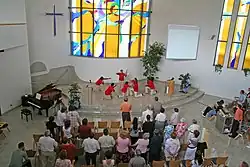- ↑ За исключением небольшой группы, именуемой «баптисты седьмого дня», проводящей богослужения в субботу.