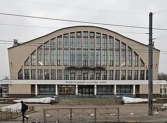 Здание построено в 1957—1963 годах архитекторами С. Евдокимовым и А. Изоитко, инженерами Л. Онежским и В. Мининым, автор проекта детского бассейна — Н. Башнин. Бассейн был одним из первых крытых бассейнов СССР[2], длина 8[1] дорожек — 50 метров[2]. Изначально планировалось разместить здание на Крестовском острове, и проект был рассчитан на расположение в парке[3].