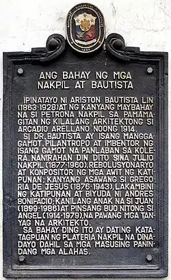 В 1914 г. Баутиста построил для своей семьи (включавшей и многочисленных родственников жены) дом в центре Манилы. В 2011 г. Дом Накпилей-Баутиста (таг. Ang Bahay ng mga Nakpil at Bautista) признан памятником истории и культуры, на нём установлена мемориальная доска.