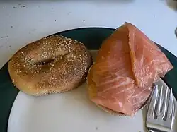 Бейглы со сливочным сыром и локсом (вяленым лососем) считаются традиционной частью американской еврейской кухни (в народе известной как «локс и шмеар»)