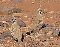 Белобрюхий султаноносный голубь[4], или острохохлый каменный голубь[5] (лат. Geophaps plumifera) — вид птиц из семейства голубиных. Эндемик Австралии, обитает в полузасушливых и засушливых пустынных районах севера, центра, северо-запада и северо-востока континента. Небольшой голубь, длиной до 23,5 см и с размахом крыльев 30—35 см, с буровато-рыжей полосатой окраской, хорошо маскирующей его на фоне песчаного грунта и скал австралийских полупустынь и пустынь.