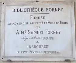 Библиотека получила имя Самюэля Эме Форне (фр., 1819—1879)[2], бизнесмена швейцарского происхождения, который по завещанию предложил городу Парижу создать учреждение по содействию образованию ремесленников.