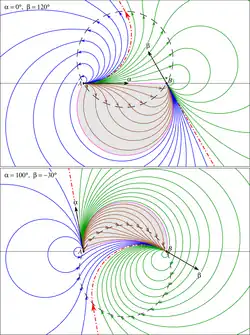 Бидуги семейства пересекают эту окружность под постоянным углом .
