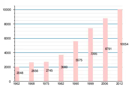 | 1962 | 1968 | 1975 | 1982 | 1990 | 1999 | 2006 | 2007 | 2011 | 2012 |