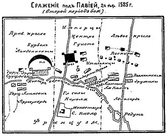Битва при Пави́и (исп. Batalla de Pavía) — ключевое сражение Итальянской войны (1521—1526) между испанской и французской армиями, произошедшее 24 февраля 1525 года. Первая битва Нового времени, положившая начало успешному использованию ручного огнестрельного оружия.