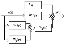 Простая каскадная модель Гаммерштейна-Винера[5]. Применяется, когда выходной периодический сигнал содержит третью и четвертую гармонику.