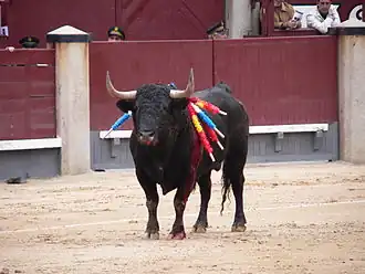 Быки выращиваются на особых фермах (исп. ganaderías), существующих в Испании и в Латинской Америке, и перед боем в загривок быка втыкается маленький цветной вымпел, по которому можно определить происхождение быка. Также об этом можно узнать по клейму и из плаката, который часто показывается перед выходом быка. Самая известная «ганадерия» — Миура, быки которой известны своей агрессивностью.