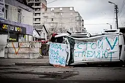 ![]() Мурал, созданный Banksy в Бородянке, 2022 | |||