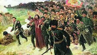 ![]() Ю. И. Репин «Тюренчен. В славной смерти вечная жизнь.» (11-й Восточно-Сибирский стрелковый полк в Тюренченском бою). | |||