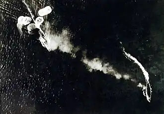 - ↑ По британским данным, в «Рипалс» было не 18, а 4 попаданий торпед, и одно попадание авиабомбы