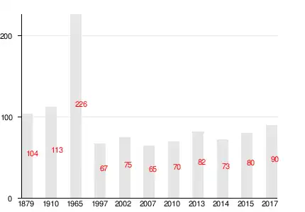 | 1997[15] | 2002[16] | 2007[17] | 2010[18] | 2013[19] | 2014[20] | 2017[1] |