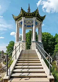 Псевдокитайское сооружение, построенное при организации оформления переходов из Старого сада в Новый (из Екатерининского парка в Александровский). Также оформляет въезд на Треугольную площадку Екатерининского дворца[2]. Стоит на насыпной горе, построено в 1772—1774 годах И. Герардом и В. И. Нееловым, который был вдохновлён гравюрой XVII века[3].