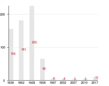 | 1838 | 1862[18] | 1997 | 2007[19] | 2010[20] | 2017[1] |