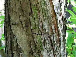 Дерево высотой до 6 м с густой, несколько пирамидальной кроной. Кора ствола и ветвей серая и желтовато-коричневая; молодые побеги тёмно-пурпурные, голые или слабо волосистые. Колючки короткие, 1—1,5 см длиной.