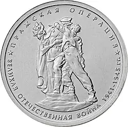 - ↑ Пражская операция. Серия: 70-летие Победы в Великой Отечественной войне 1941-1945 гг.. Каталожный номер: 5712-0028. База данных по памятным и инвестиционным монетам. Банк России. Дата обращения: 22 апреля 2020. Архивировано 1 августа 2020 года.