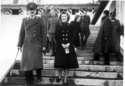 - ↑ Лишь однажды Ева Браун уговорила Гитлера представить её герцогине Виндзорской, сопровождавшей супруга во время визита в Бергхоф. История любви короля Великобритании к Уоллис Симпсон, стоившей ему империи, восторгала Еву Браун, которая мечтала, чтобы и её возлюбленный поступился своим имиджем и женился на ней.