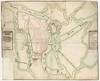 В 1648 году казаки Богдана Хмельницкого ограбили город и полностью его разрушили. Во время войны России с Речью Посполитой 1654—1667 годов Варшавский сейм принял в 1654 году специальную декларацию о немедленном восстановлении Брестских городских укреплений, освобождении города от податей, все доходы от берестейской экономий направлялись на военные фортификационные работы и закупка боеприпасов, специальный фортификационный инженер. Для выполнения «валовых работ» набирались люди из берестейской экономий из расчета 1 неделя работы на человека с 1 волоки. Городские укрепления были перепланированы в виде мощного пояса бастионных укреплений, окружавших город и широко сочетавших искусственные и естественные препятствия.