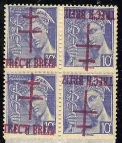 Аналогичного частного характера надпечатки на марках Франции и на французском языке были произведены в марте 1944 года для бретонского Бреста, на этот раз с благотворительной целью: