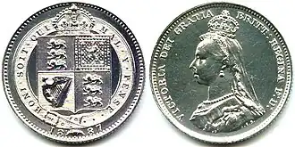 С 1971 года в Великобритании выпускали монету 5 пенсов, идентичную по размерам шиллингу (вес монеты 5,65 г, диаметр 23,59 мм). С 1990 года чеканят монету 5 пенсов уменьшенного размера.