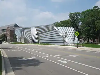 В 2000 году Броуд вложил 23,2 миллиона долларов для создания Центра искусств Броуда в Калифорнийском университете в Лос-Анджелесе, спроектированный Ричардом Мейером.[50] Эли и Эдит Броуд пожертвовали Michigan State University 28 миллионов долларов на строительство Художественного музея Эли и Эдит Брод по проекту лауреата Притцкеровской премии архитектора Захи Хадид . Музей открылся в ноябре 2012 года.[51] В 2014 году Фонд Броуда объявил о пожертвовании 5 миллионов долларов Художественному музею Броуда в Michigan State University для организации выставок.[52] В том же году Броуды объявили о взносе в размере 25 миллионов долларов на расширение Eli Broad College of Business, В результате общая сумма пожертвований пар в Michigan State University составила почти 100 миллионов долларов.[53]